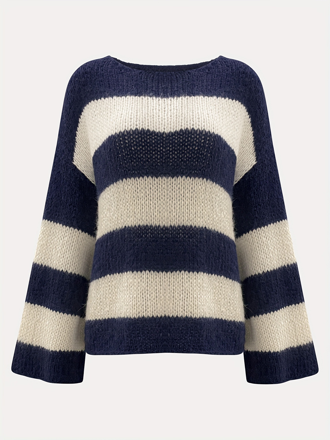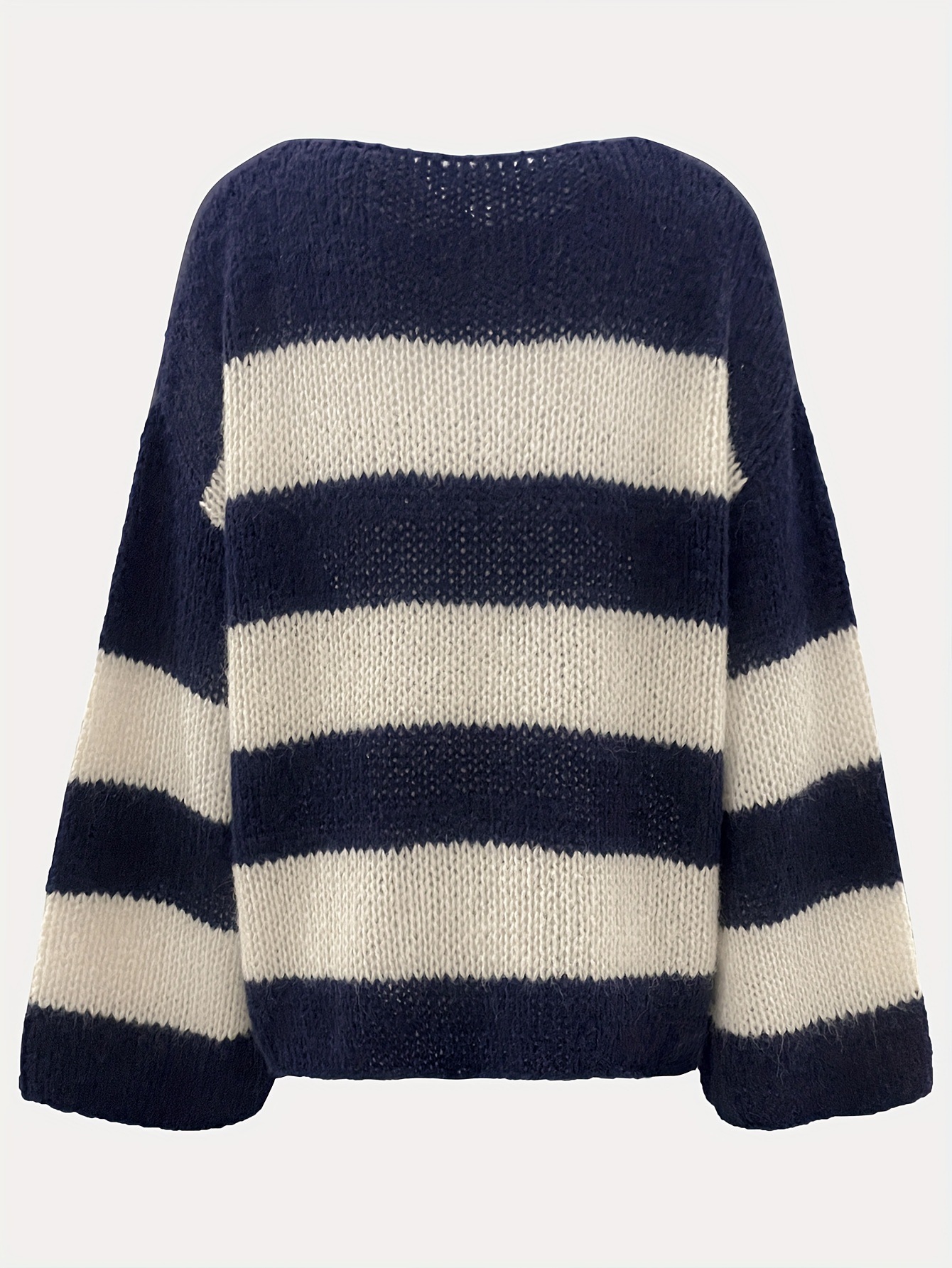 Contrast-Striped Loose Knit Pullover